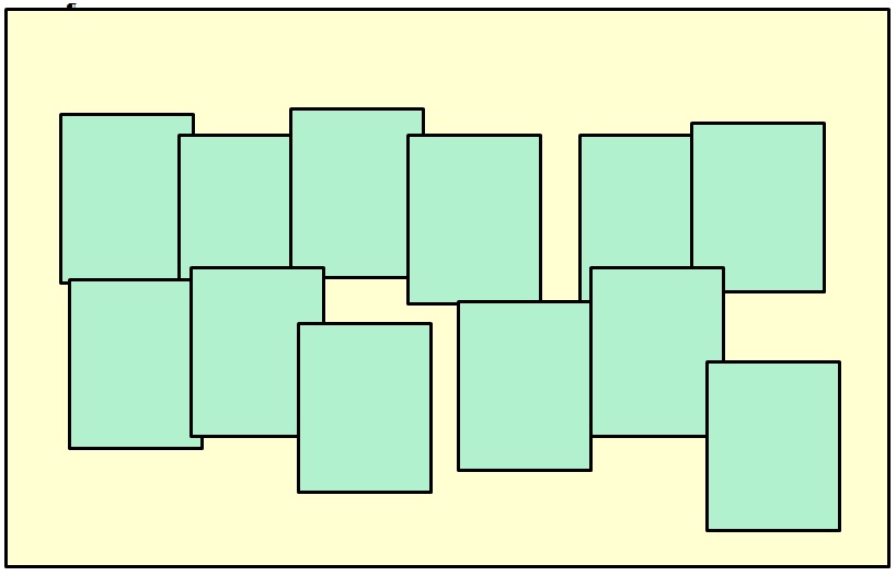 Цього можна уникнути, якщо топографічні знімання виконувати одночасно єдиним масивом. Але це, по суті справи означає, що ми переходимо від сутності "земельна ділянка" до сутності "сукупність земельних ділянок" як єдиного цілого – земельно-кадастрового покриття. Саме розуміння того, що сукупність земельних ділянок – це єдине ціле і дозволяє дійти логічного висновку: кінцевою метою виконання топографо-геодезичних робіт з інвентаризації земель є формування суцільного земельно-кадастрового покриття на всю територію. Характерною ознакою земельно-кадастрового покриття є повна узгодженість меж земельних ділянок без накладань та розривів (мал. 3).