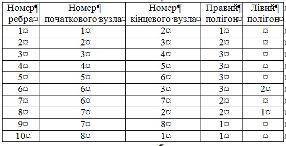 Таблиця 3. Полігони